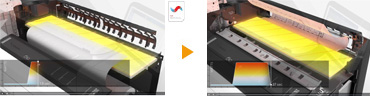 ウォームアップタイムなしですぐに印刷を開始する技術。待機モードから最初のプリントが仕上がるまでに僅か40秒(A1 ヨコ)です。また、トナーを用紙に定着させる時だけ瞬時に温度を上げるため、消費電力も従来の約1/2。オゾンの発生もほとんどなく、稼働中の騒音レベルも木の葉がふれあう程度と、生産性とオフィス環境への配慮を同時に満たしています。
