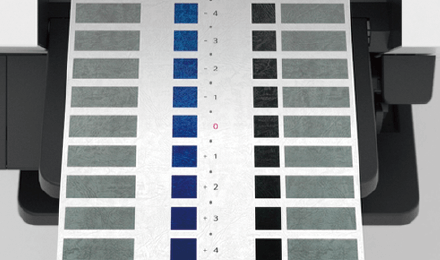 実際に使用する用紙で調整用のチャートを出力することで、誰でも簡単に最適値を登録し、高画質で印刷することができます。