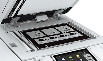 調整用チャートをスキャナーで読み取るだけで、印字位置の補正を実施。名刺など印字位置が求められる出力物も簡単に補正を行います。