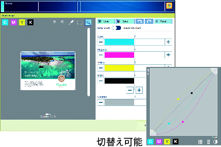 本体パネルで目視確認しながら、ジョブごとに色補正が可能。※4