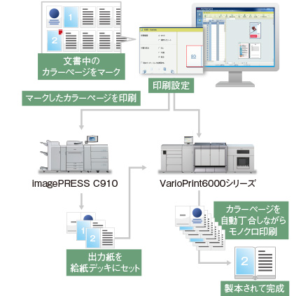 ジョブスプリット機能によりカラーモノクロ混載JOBを効率的に処理。
