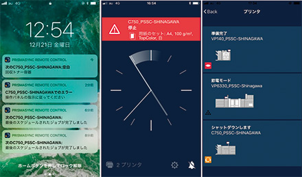 離れた場所で作業をしながら、ジョブの進捗状況や消耗品補給を手元のスマートフォンアプリへ通知することで他の業務を行いながら効率的な作業が可能。※1