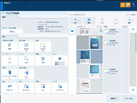 本体の操作パネルにページ単位のプレビューを表示し、用紙の確認、ページ削除、ジョブ結合が行えます。印刷直前でも本体からの確認、設定変更が容易です。