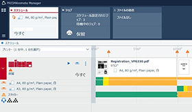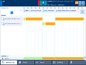 印刷予定時間をグラフで表示します。用紙/消耗品の補充や用紙取り出しのタイミングがひと目で把握できるので便利です。