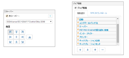 「コントロールバー」は、印刷日時やカラー設定などのジョブ情報やカラーバーなどの情報を出力紙にプリントする機能です。色味や設定状況の確認が明確に行えます。