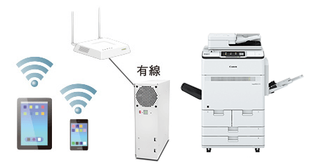 ワイヤレスネットワークに接続されていれば、同一ネットワーク内にあるiPadやiPhoneなどの印刷機能を備えたiOS 4.2以降のモバイルデバイスから印刷部数や片面/両面などを指定して印刷することができます。