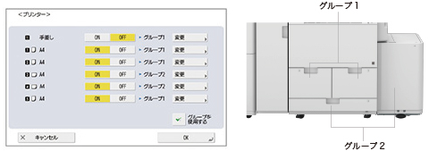 業務システムで指定したカセットの紙が無くなっても、プリンターでグループ化された別のカセットへ自動で給紙を切り換えます。複数種類の用紙を扱う業務でプリンターの給紙能力を最大限に発揮できます。