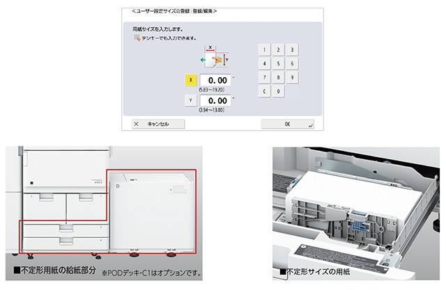 不定形用紙のカセット給紙にも対応