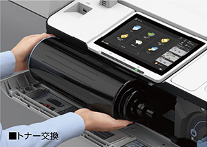 大容量のトナーボトルは稼働中の交換も可能