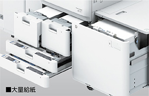 大量出力の際も、用紙補給の手間を軽減します。