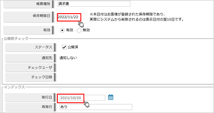 まずはbizform onlineで受け取った帳票データの保存期間をご確認ください。
