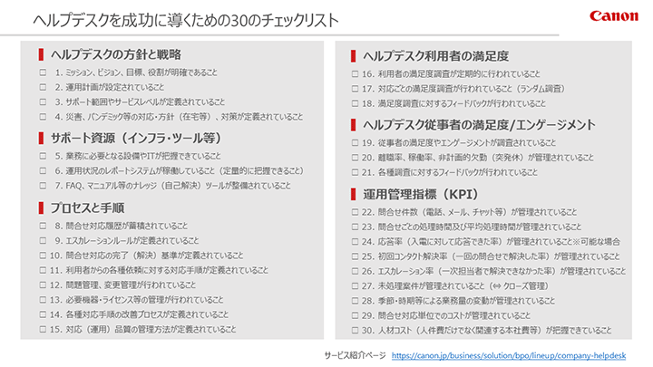 社内ヘルプデスクを成功に導くためのチェックリスト