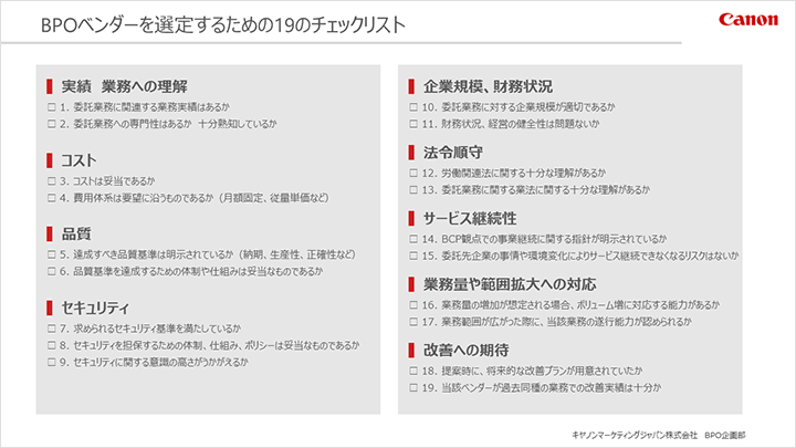 BPOベンダーを選定するためのチェックリスト