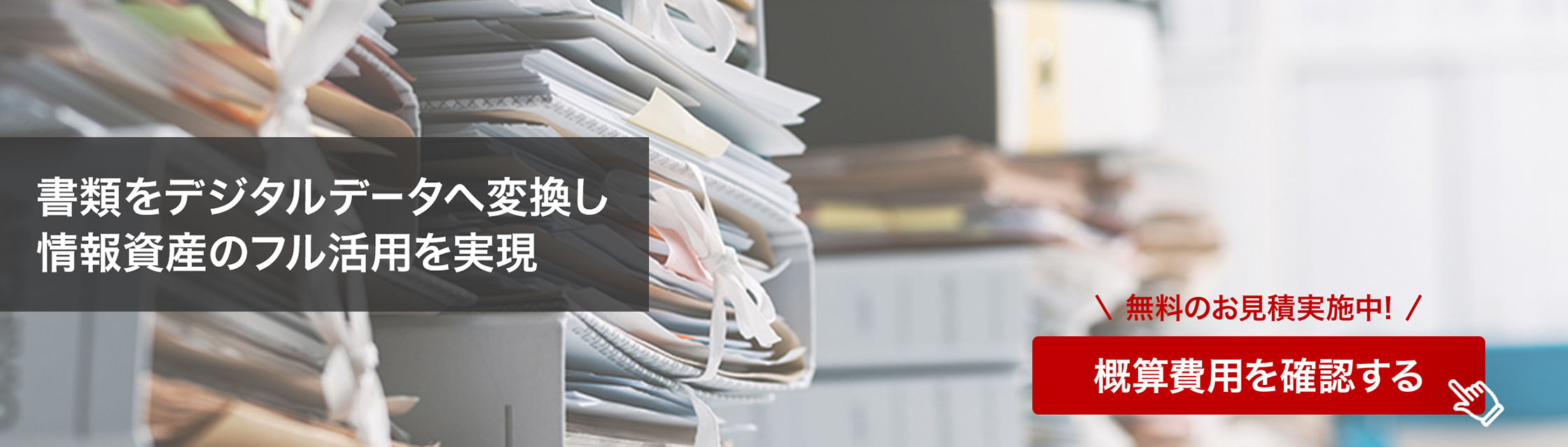 オフィスなどに保管されている文書全般を専用機にて高速スキャンします。