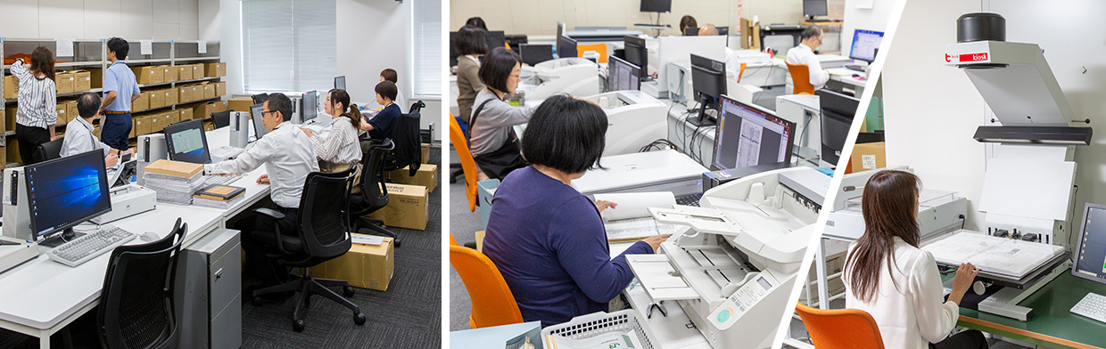 金融、製造、流通、エネルギーなど、様々な業種業態の多様な文書についてスキャン電子化を行ってきました。大量に保管された保存文書だけでなく、業務帳票など日々の業務との連動性が高い文書にも対応しています。特に業務連動型の案件では、お客さまの業務の一部を担う中で新たな課題を見つけ、継続的な改善も実施してまいりました。幅広い課題に取り組んできた実績は、お客さまにご満足いただけるサービスの提供へとつながっています。