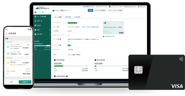 一般のビジネスカードと違い、発行されるカード1枚ごとの上限金額、利用先の制限などの管理が自社で可能になります。