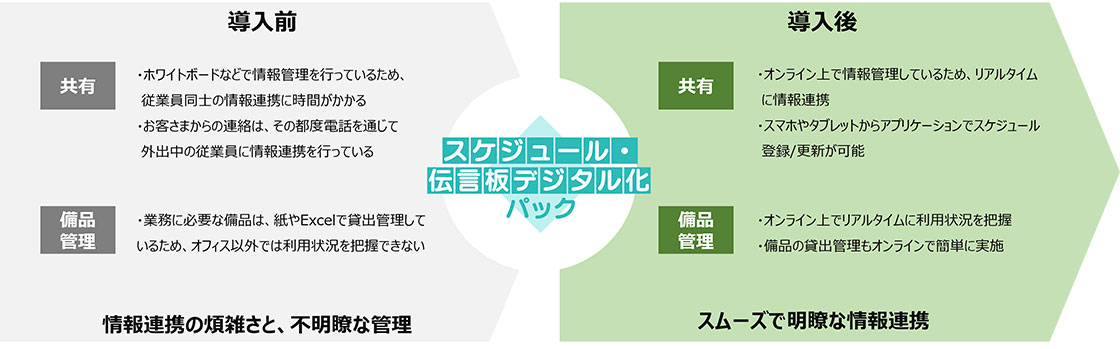 従業員のスケジュール管理は重要な業務です。しかし従来のホワイトボードなどを使ったアナログな運用では、確認できる場所やタイミングに制限があり、その結果、様々なコミュニケーション不足による問題が発生します。効率的な働き方を実現するためには、従業員同士が円滑なコミュニケーションを図ることができる環境づくりが必要です。