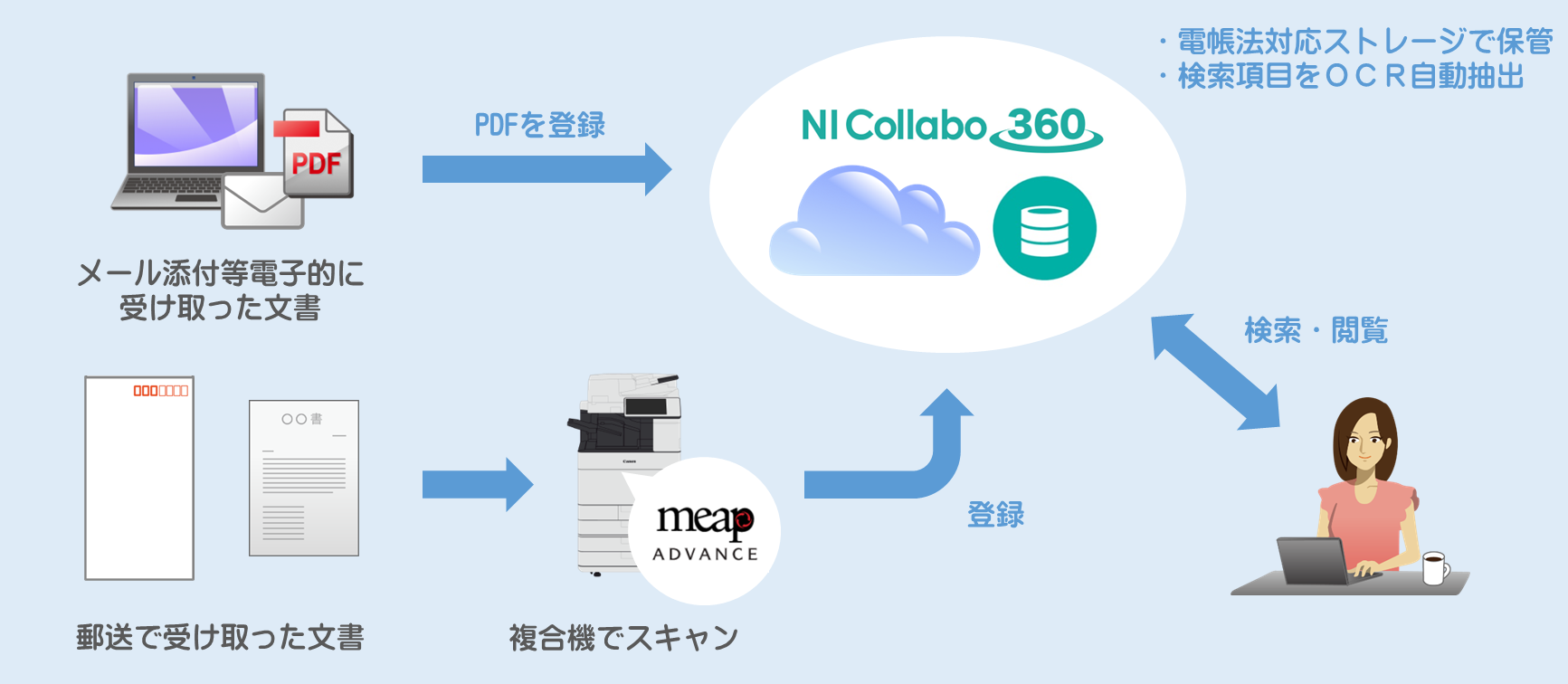 スキャンの設定を登録してあるので、誰でも法的要件に対応した保存が可能です。
