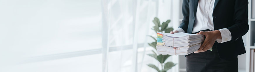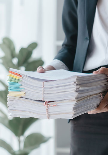 - 取引先から届いた書類を、紙でのファイリングや個人PC内にデータ保管している