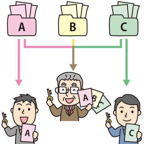 共有するデータはフォルダ・ファイル単位でアクセス権限を設定することが可能です。異なる部署や取引先とも安心して利用できます。