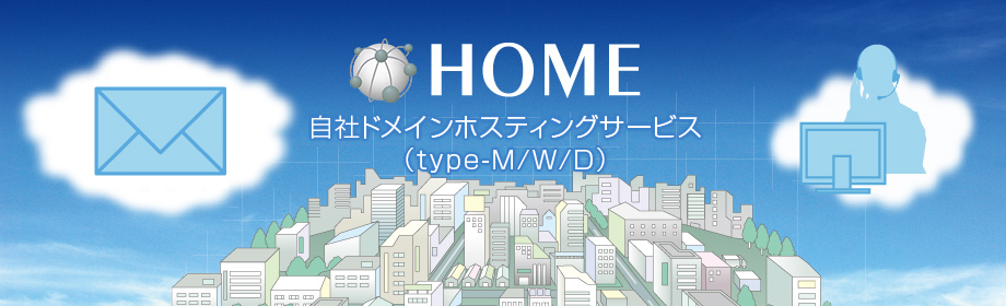 中小オフィス向けIT支援サービス「HOME」自社ドメインホスティングサービスHOME type-M/W/Dは、自社ドメインでのメールやWeb、HOMEコンタクトセンターによる「IT運用支援」を提供するものです。無料メールサービスや、プロバイダードメインのメールアドレスを利用されているお客さまにおすすめ致します。