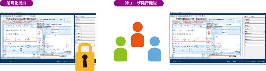 イメージデータとキー項目を暗号化することでセキュアな管理が可能です。