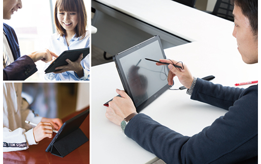 - 例えば保険会社の場合、データエントリーに係る手間を削減できるとともに、営業活動の効率化を図ることができます。一方、契約者に対しても画面上で手続き内容を確認した後、署名すればその場で手続きが完了になる他、一回の署名で複数の手続きが可能になるなど多くの利便性向上を実現します。