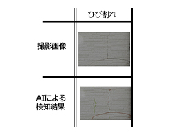 社会インフラの老朽化が進む中、労働人口の減少、技術者の高齢化という社会課題に対して画像処理技術で応えるものです。 従来点検者が近接目視で行っていた変状確認を、カメラで撮影した画像をAIを用いて変状検知を行い、従来手法の課題を解決します。