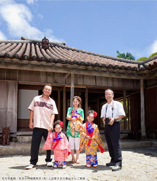 「数ある写真館の中から、日光写真館を選んでくれたお客さまを裏切ってはいけない。 満足を提供するために、汗を流して、一生懸命に撮る。それが、私のモットーです」日光写真館社長・仲嶺真弥氏はそう語る。