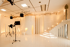 2009年にスタジオをリニューアル。南欧風のオープンフォトテラスをはじめ、季節感を大切したスタジオづくりを行った。「自然光がふんだんに入ってくる設計にしています。四季によって、光って全部違う。その光で写真の表情もすごく変わってくるんですね。だから、いつでも季節感が漂う空間にしたかったんです」。また、白を基調としたメインのスタジオには、本物感を追求したオブジェがしつらえられている。「ハリボテのセットじゃない、デザインや質感にこだわった造形物を配したかった。というのも僕らはロケーション撮影をひとつのセールスポイントにしていますが、基本はやはりスタジオ撮影なんですね。ブライダルはもちろん、家族写真や子供の写真でも、よりクオリティの高い写真づくりをするために、本格感、本物感にこだわったんです」と本多氏は語る。