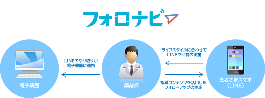 広く利用されているLINEで薬剤師や患者さまの負担を軽減。服薬フォローの継続性を向上します。