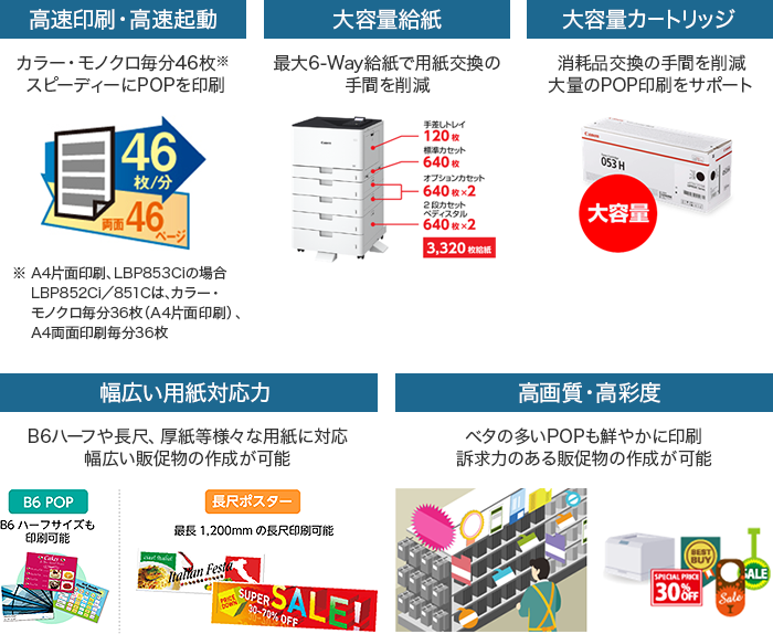 本部と店舗で業務分散 レーザービームプリンター Satera LBP流通小売業向け販促ソリューション