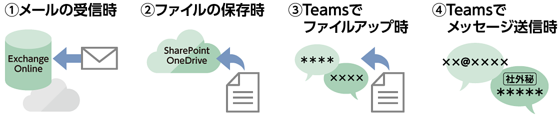 Teamsで共有されるファイルの検査を行い、個人情報など規定条件に一致したファイルのアップロードをブロックします。