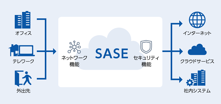 SASEというネットワーク機能とセキュリティ機能が統合されたクラウドサービスであれば、どこからでも安全にアクセスすることができる上に脆弱性対応もメーカーによって迅速に行われます。