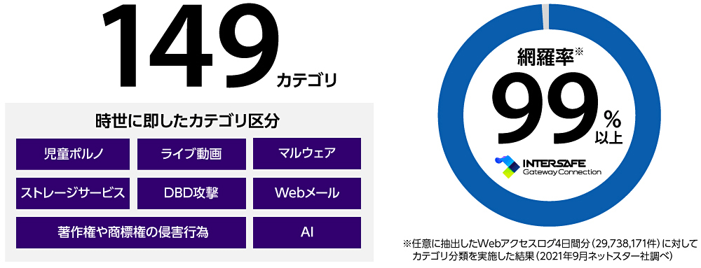 カテゴリ数149、登録数81億件以上で圧倒的なフィルタリング精度を可能にします。