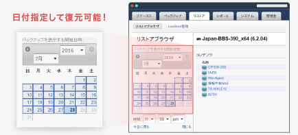 バックアップしたデータは、日付を指定してさかのぼって復元することができます。そのため、仮にランサムウエアに感染したとしても、それ以前の状態に復元可能です。
