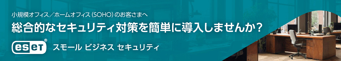 ESET スモール ビジネス セキュリティは、法人向けライセンス製品と異なり、個人のお客さま向け製品と同様、インストールも簡単です。更新の機会などで、できるだけ早めに対策をご検討ください。