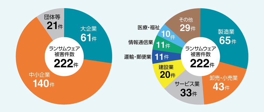 ランサムウェア攻撃の被害を受けている法人の規模・業種について