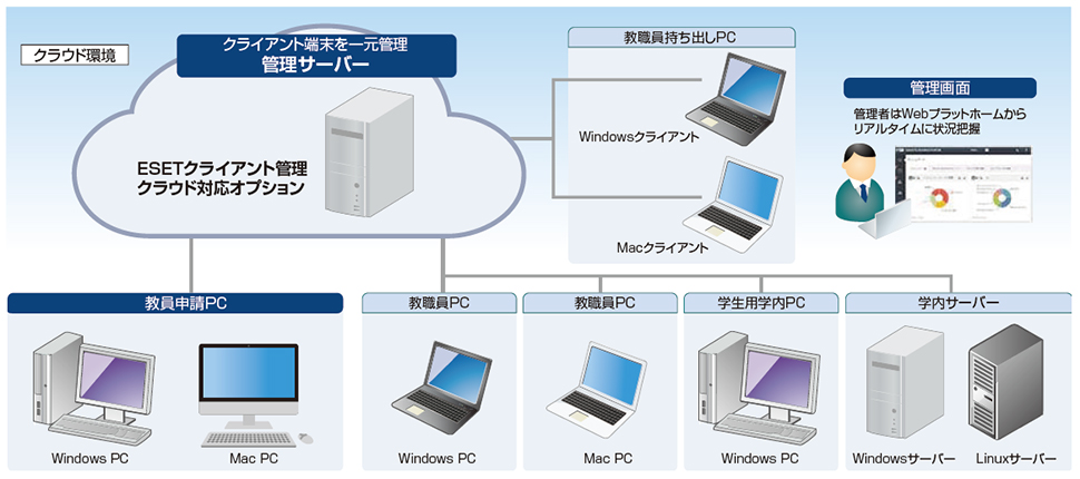 PCやモバイル端末のセキュリティを一括してリアルタイムで管理できるようになった。