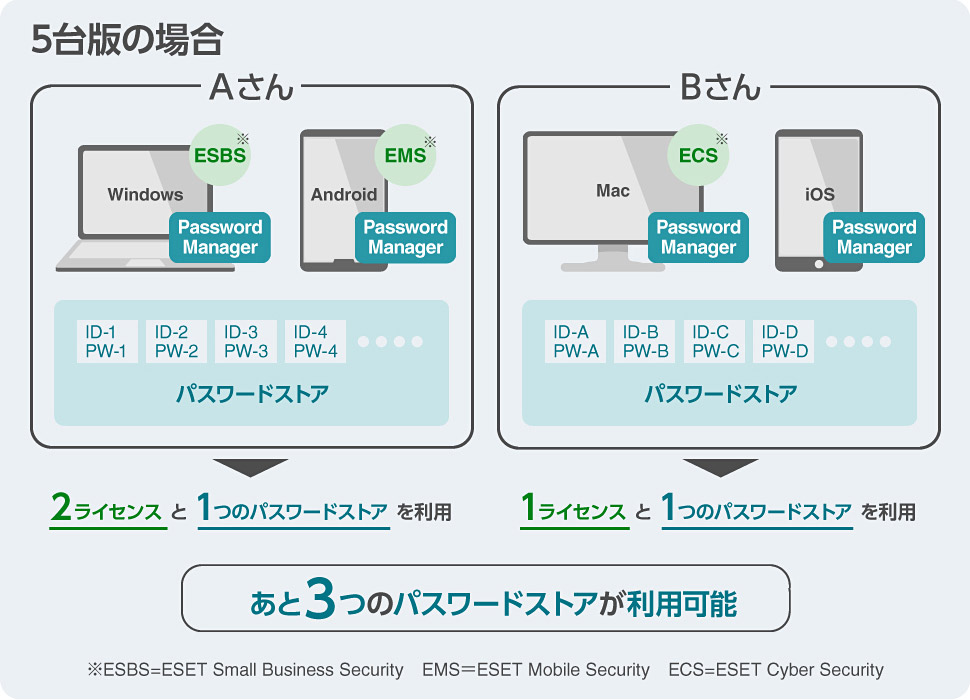 購入した製品の台数分のパスワードストアを作成することができ、パスワードストアを作成してもライセンスは消費しません。