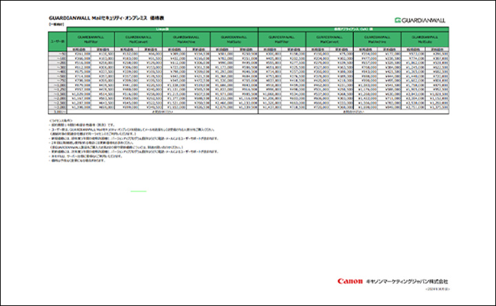 GUARDIANWALL 添付ファイルダウンロードリンク化オプション 価格一覧 (PDF形式/0.64Mバイト)