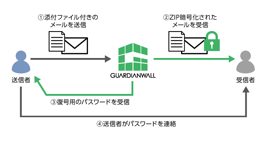 添付ファイルを強力なAES256暗号化で保護し、情報漏えいリスクを低減。自動処理により、送信者の手間を減らしながら高いセキュリティを確保します。