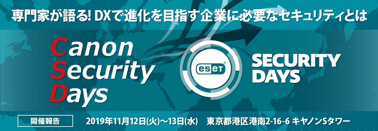2019年11月12日(火)から13日(水)まで、Canon Security Days/ESET Security Days 2019を開催いたしました。