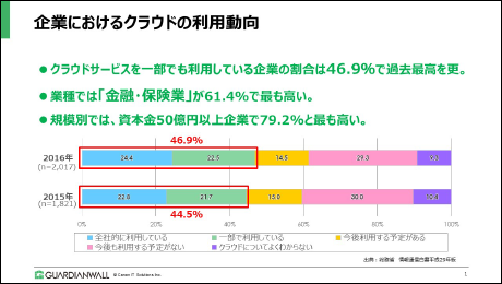 半数近くの企業が何らかの形でクラウドサービスを利用