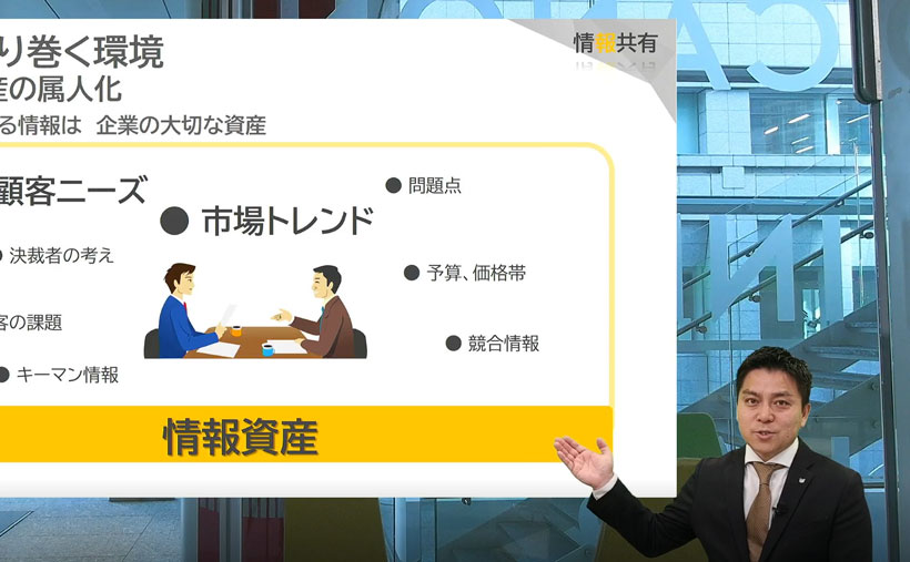 セミナーでは私の経験を中心にコンサルティングを行っているお客さまの事例や弊社のノウハウ(成功・失敗)をもとに営業部門の効果的な情報共有のコツをお伝えしています。