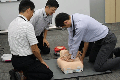 キヤノンMJグループでは、AEDと心肺蘇生法(CPR)講習をセットで普及させることで、救命率の向上を目指しています。今後もキヤノンMJグループでは社会課題の解決に向けて、AEDと心肺蘇生法(CPR)講習に力を入れていきます。