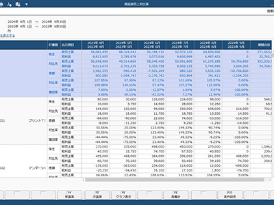伝票入力されたデータを、リアルタイムでグラフや表にすることができ、経営者の意思決定をサポートする分析ツールとして活用できます。
