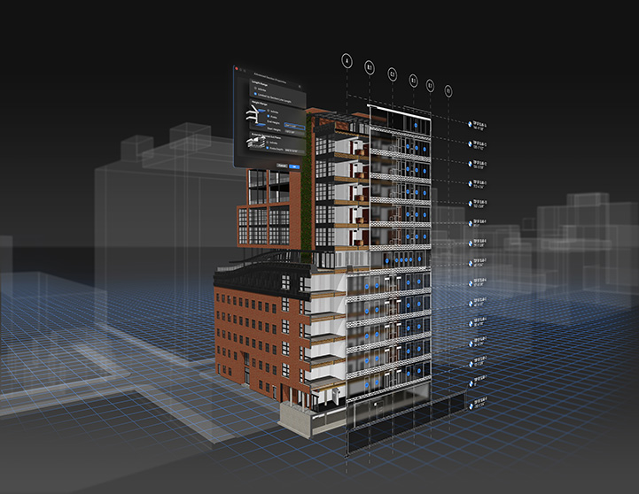 Vectorworks2025は、3Dのインタラクティブ性とビジュアライゼーションの再定義に重点を置き、デザイナーが作業環境内でモデル、設計意図、データをビジュアル化するための革新的なツールを提供します。これらのツールによって、十分な情報に基づいた設計上の意思決定を直感的かつ容易にし、設計プロセスの各段階におけるコミュニケーションと視覚的な理解をまったく新しいレベルに導きます。