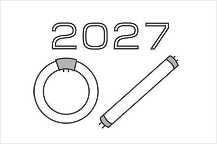 環境省は2027年までに「一般照明用の蛍光ランプに関する規制」を発表。製造、輸出入が段階的に廃止されます。在庫がある限り購入・使用は可能ですが、早めの対応をお勧めします。