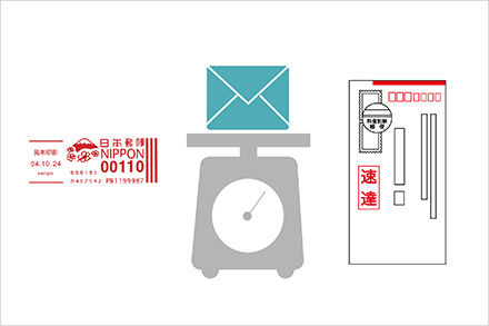 郵便物の重量や利用サービス(速達など)に応じた金額のスタンプが発行されるので、いちいち計算する必要がありません!